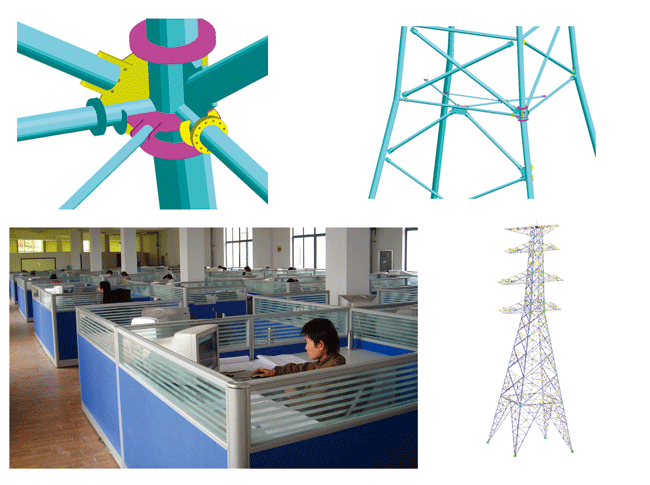 本公司拥有高素质经验丰富的设计人员,并拥有专业的设计软件,可进行应用分析,根据CAD计算机设计系统采用国内外标准,进行接头设计、强度计算和选型,并可提供详细的工程安装图。 1、输电线路铁塔年生产能力2万吨; 2、输电线钢管杆年生产能力10000吨 3、变电站钢结构支架年生产能力10000吨 4、高耸钢及广播电视等钢材年生产能力10000吨 5、四电组合、电信铁塔年生产能力10000吨