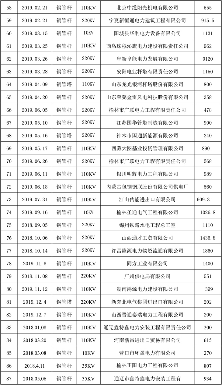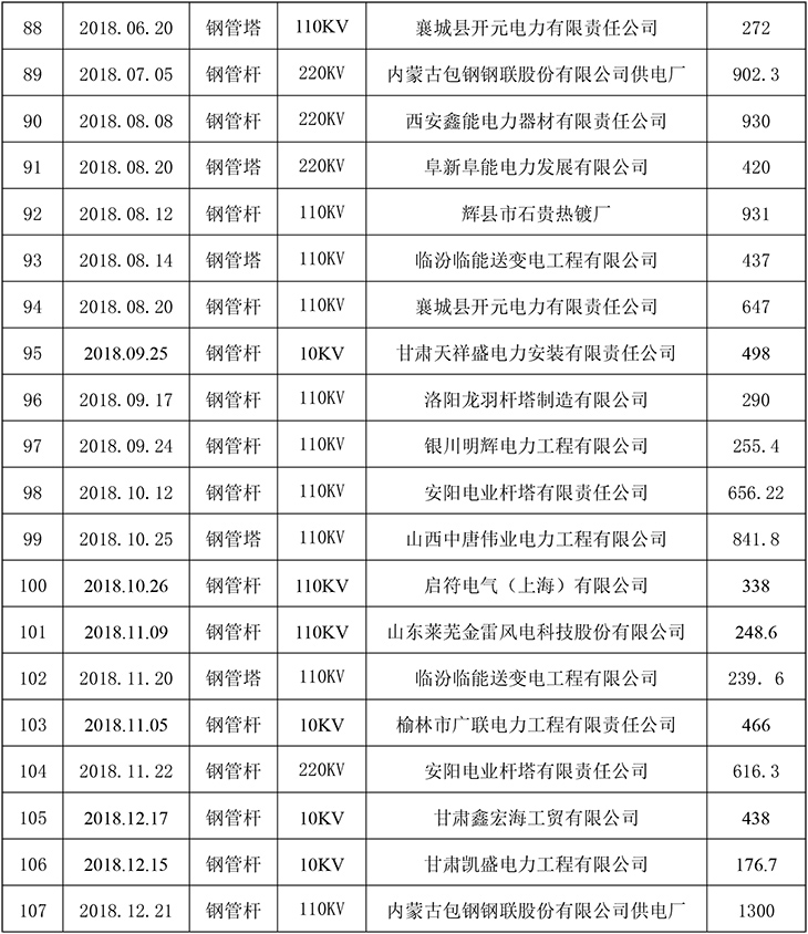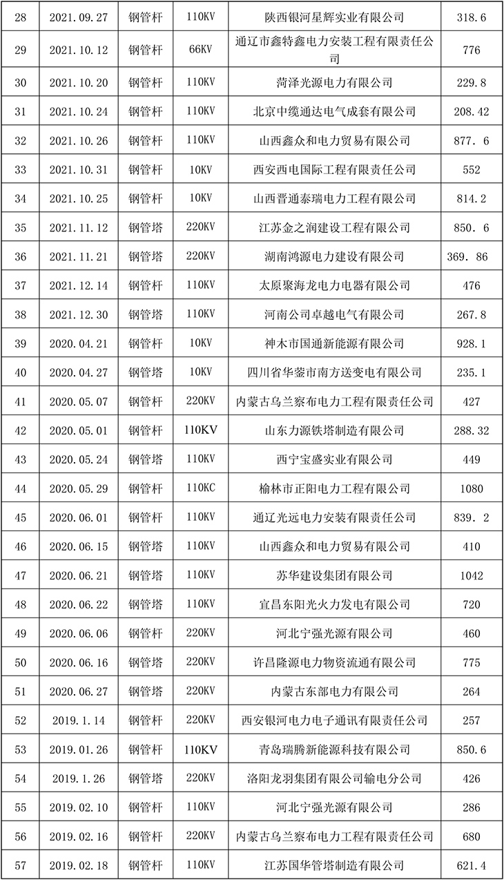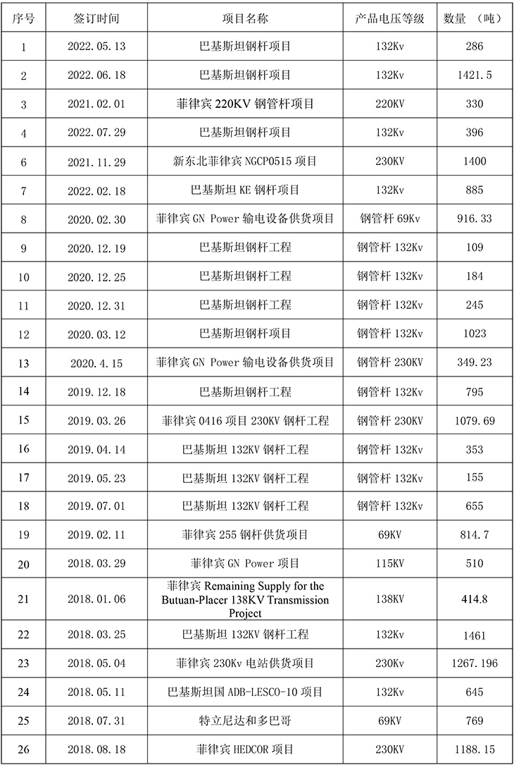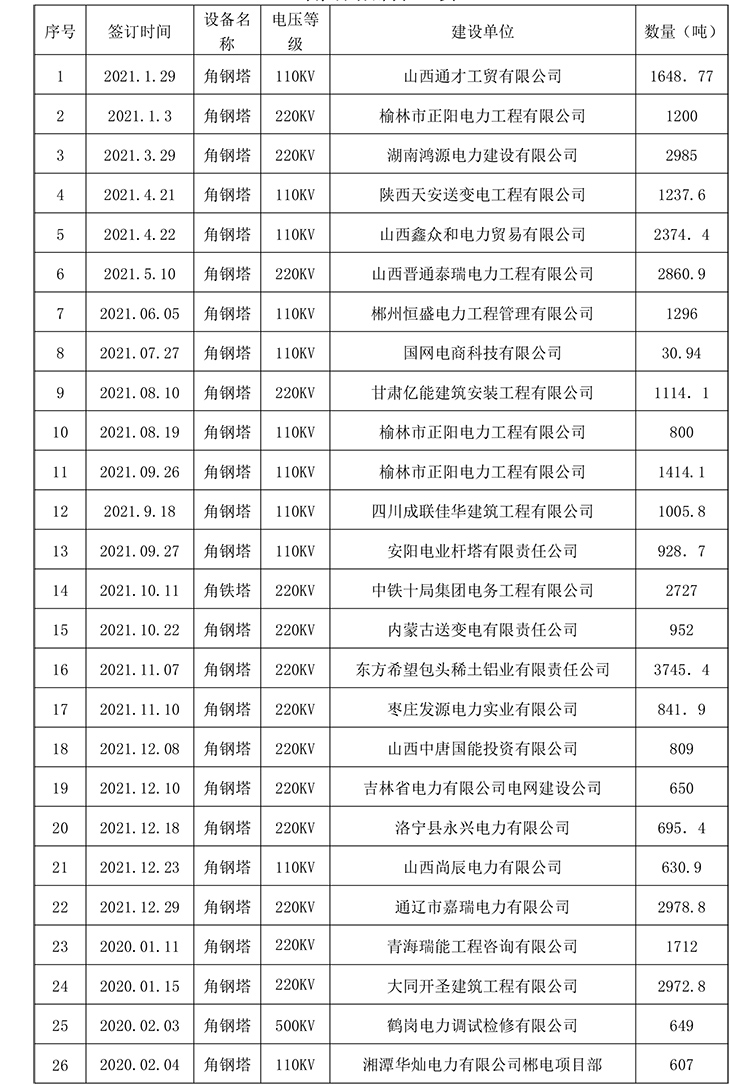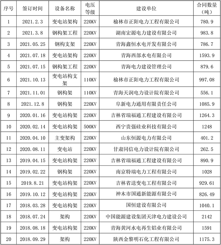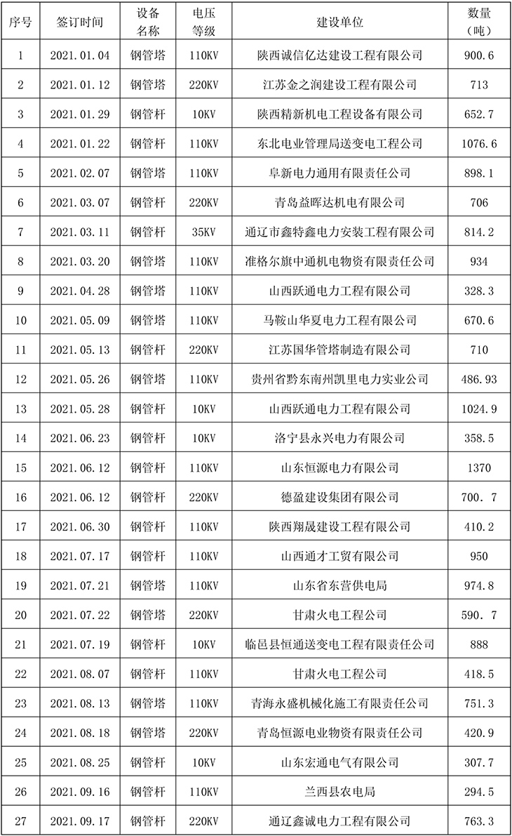公司近几年承建了二万多基各种电压等级的输电线路铁塔及变电站构架,五千多座通讯铁塔。在直缝焊管生产加工方面公司也取得了良好的市场业绩。